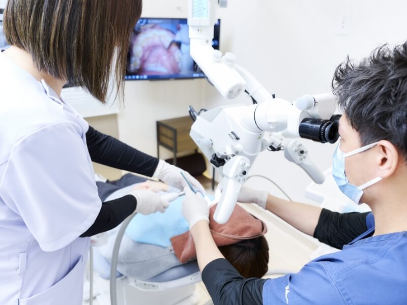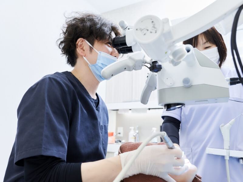 正確な「診査・診断」を行うために、当院では歯科用CTで隠れた部分を細部まで把握して、さらに肉眼では見えないところまでマイクロスコープできちんと確認しながら精密な治療を行っています。 -