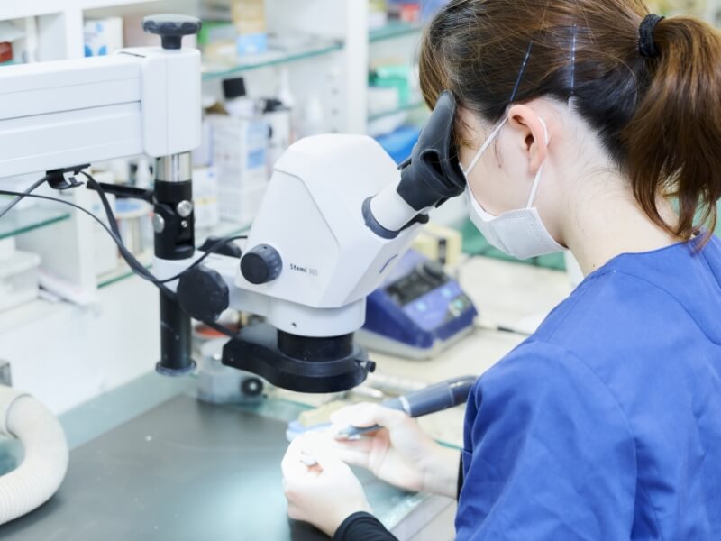 技工室を併設当院では、院内に技工室を設けています。そのため、一般の歯科医院では外注になる歯科技工物(詰め物や被せ物、入れ歯など)を、常駐している院内技工士が内製でお作りすることができます。