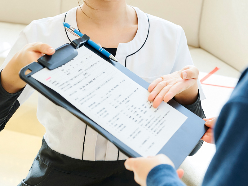問診票の内容を参考に、現在のお悩みや治療に関するご要望、通院中の診療科があるかどうかについても詳しくお伺いいたします。