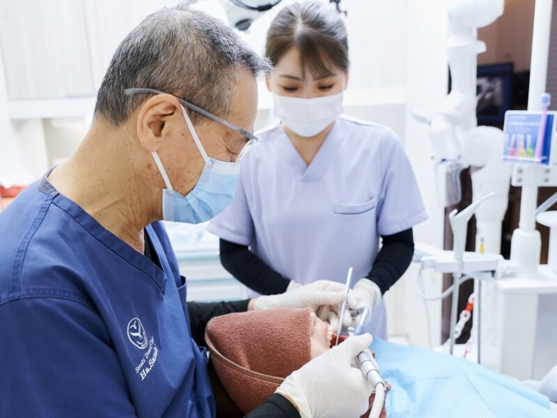 治療後にお口の健康を維持するためにも、毎日のセルフケアに加えて歯科医院での定期検診をぜひご利用ください。定期検診では歯科衛生士が中心となり、歯のクリーニングやブラッシング指導などを行い、患者様の健康をサポートいたします。
